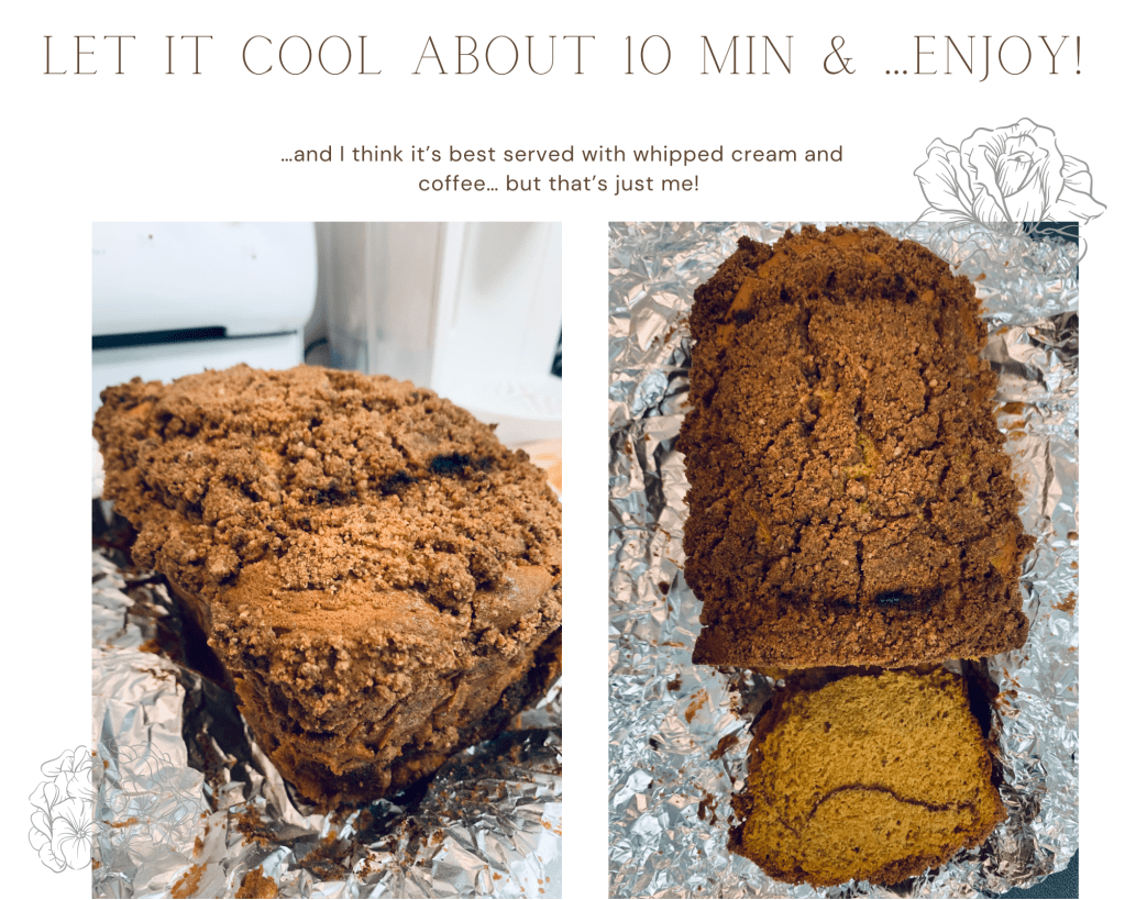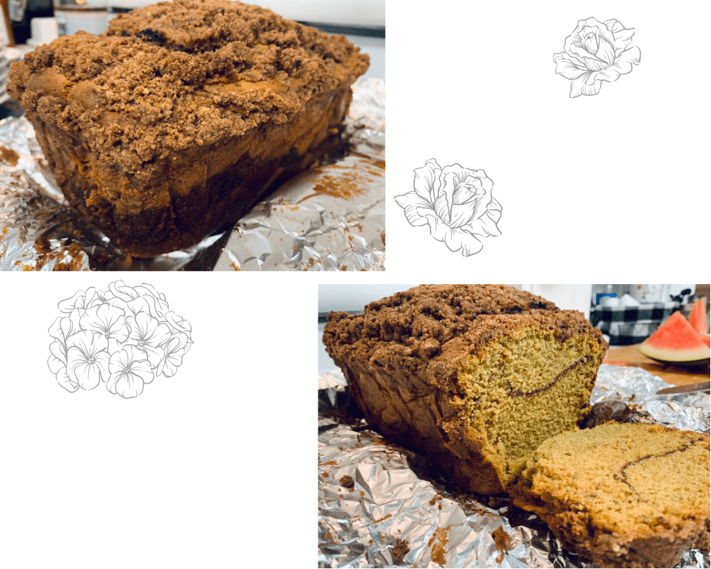 ^Let’s face it…anything Sammy bakes is great. SO…after making her coffee cake several times, I decided to make it with a twist of my own! PUMPKIN. Trust me, pumpkin is just as good in March as it was over the holidays!