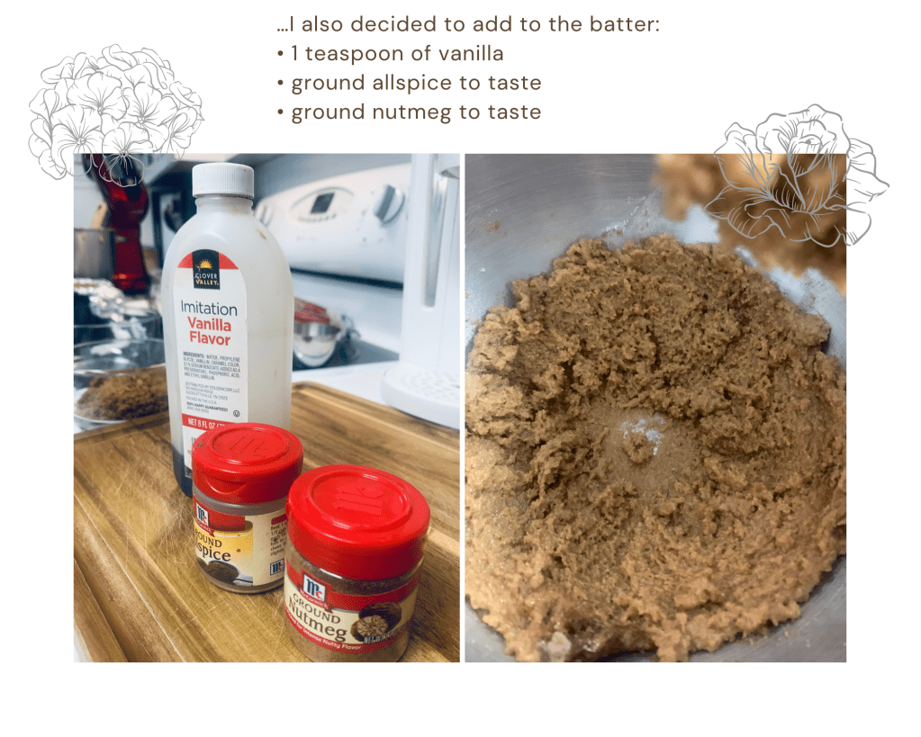- I also added ground nutmeg and ground allspice to taste, along with additional cinnamon to the batter!
